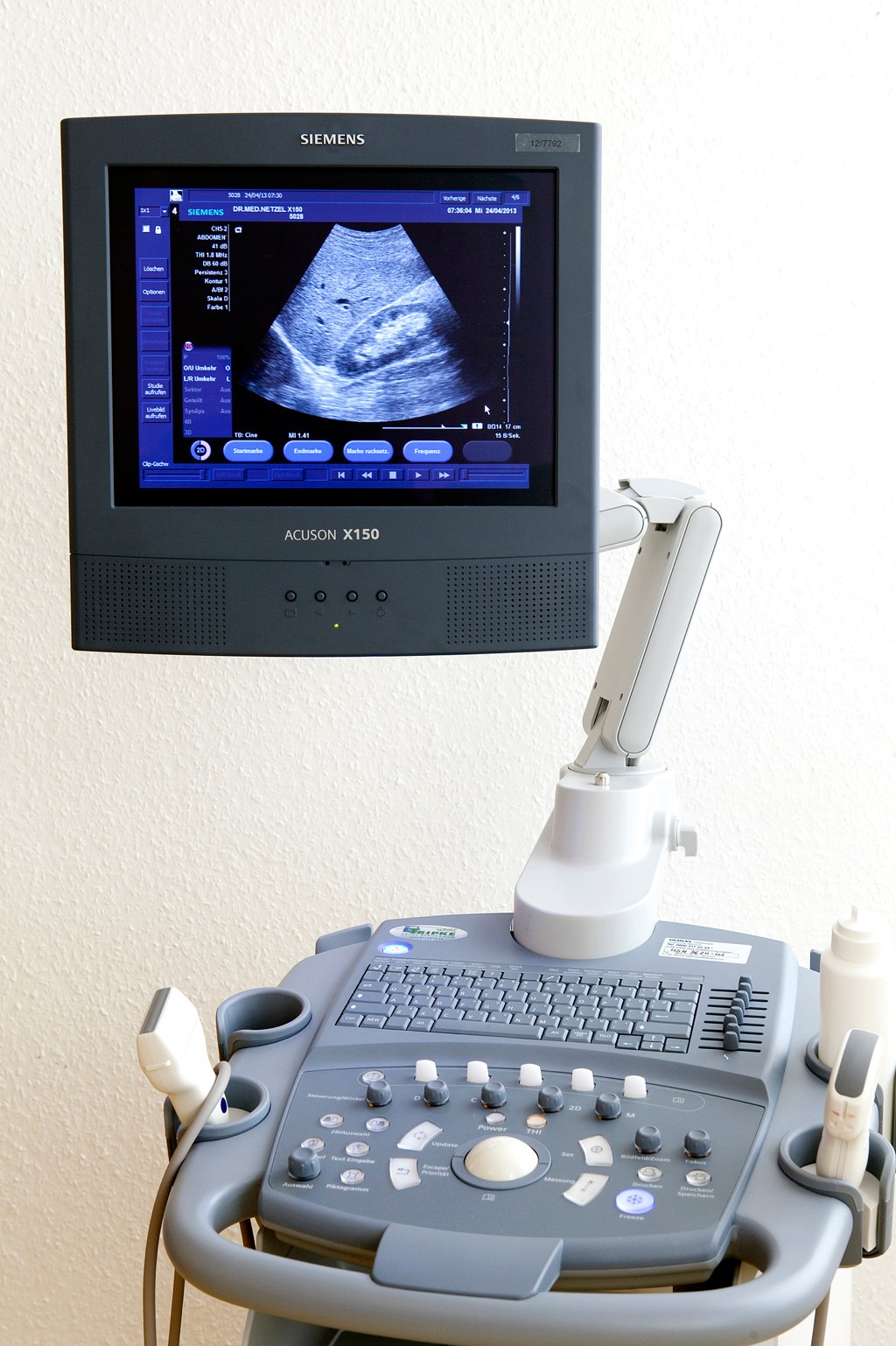Bei der Ultraschalluntersuchung (Sonographie) werden Schallwellen, die oberhalb der menschlichen Hörschwelle liegen, zur Diagnose von Krankheiten eingesetzt. Unterschiedliche Gewebearten reflektieren die in den Körper eindringenden Schallwellen in verschiedener Weise, sodass sie voneinander abgegrenzt und auf dem Bildschirm sichtbar gemacht werden können. Der Arzt kann so krankhafte Veränderungen erkennen. In meiner Praxis steht das Siemens Acuson X150 Gerät Baujahr 2012 zur Verfügung.